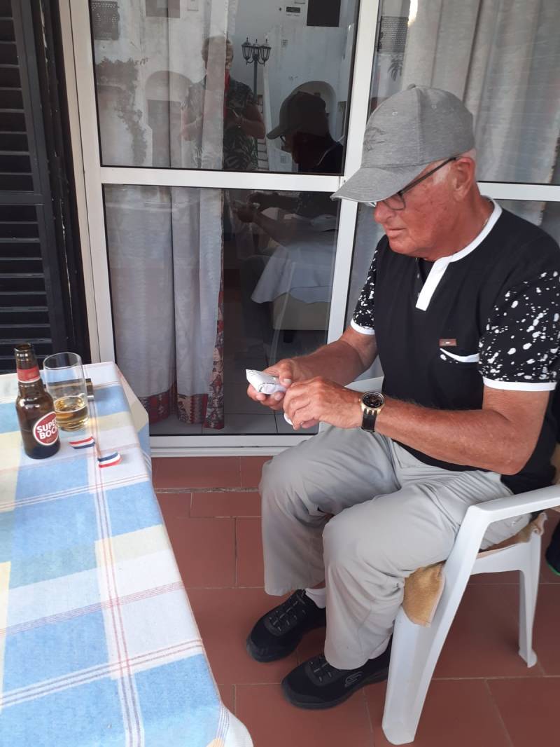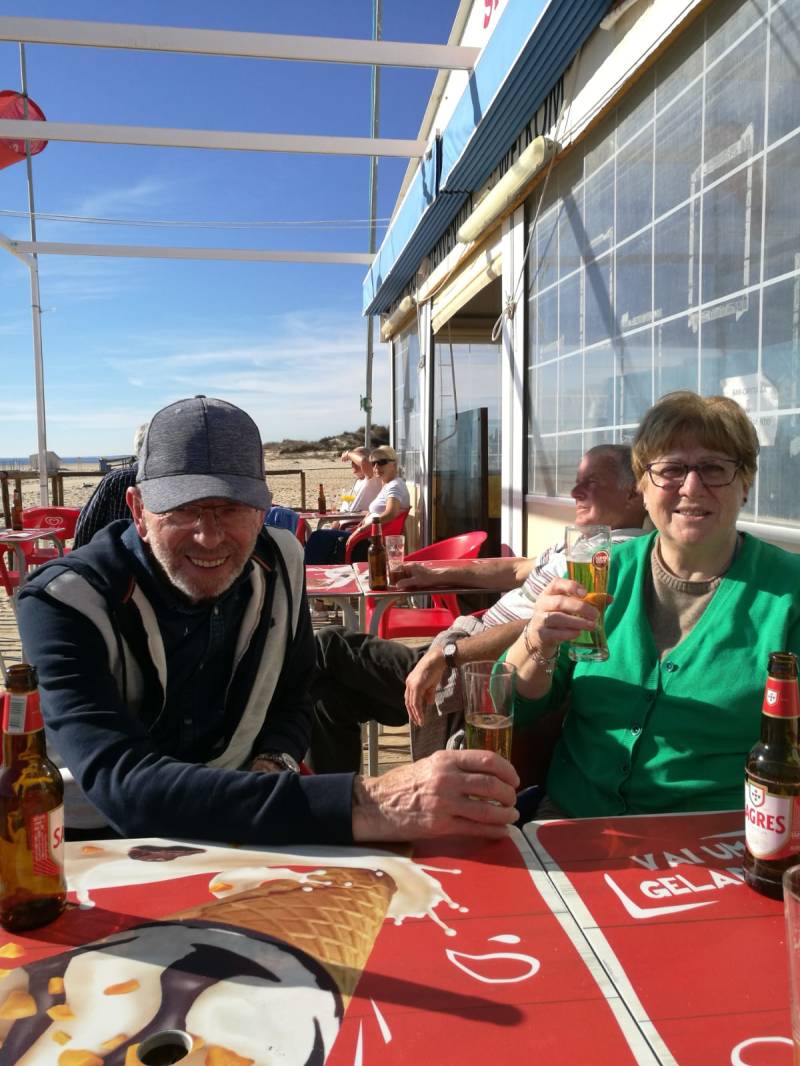 Alles en iedereen aangekomen , konden we de huisjes NIET accepteren. De een was heel donker de ander was muf .π‘π« Na 3 andere huisjes gezien te hebben en Primavera het voor Frans en Linda het had geregeld dat ze in ieder geval tot 15 Feb. in Monte Gordo terug konden , hadden wij Jan en ik Gina besloten om in dit huisje te gaan tot 4 Maart . Inmiddels waren er uren voorbij en barsten wij van de dorst en wat helpt dan ......ja zeker 'n pilske ! Proost op de rest van de vakantie πΊπΊ
