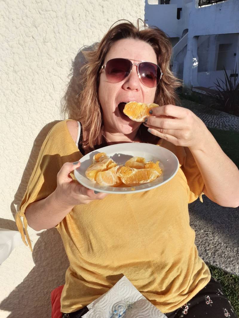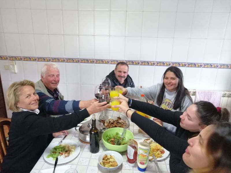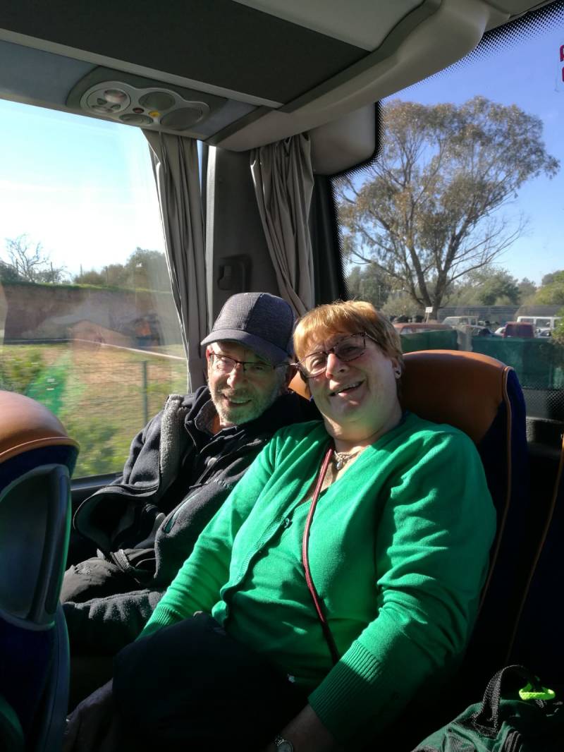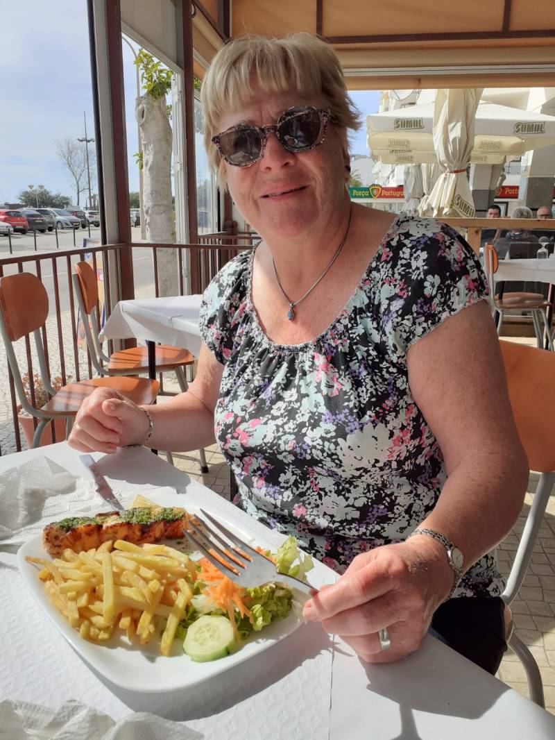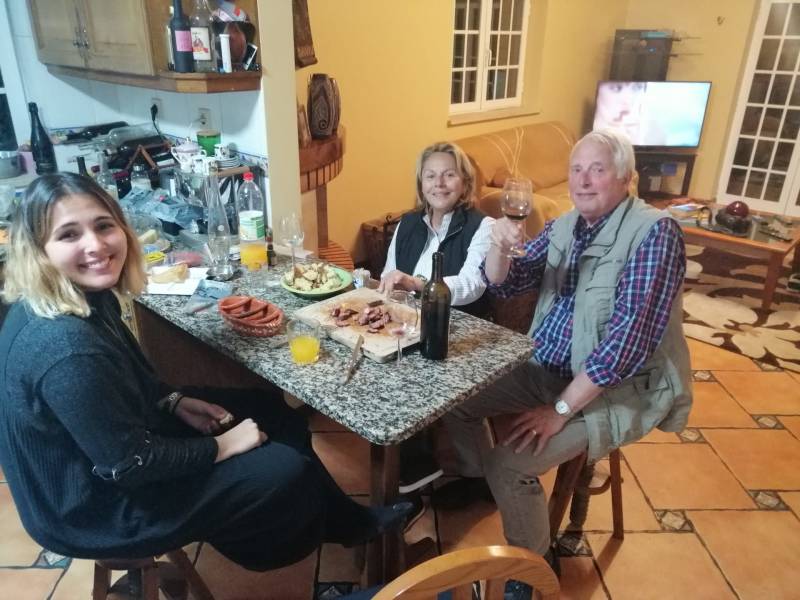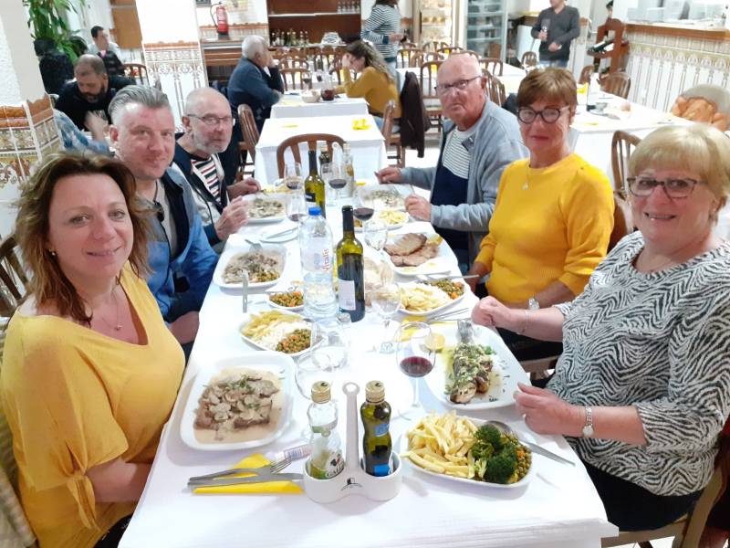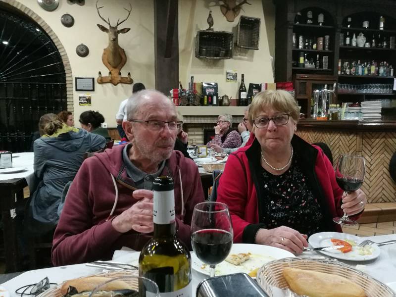 Linda en Frans reizen af naar Combria waar ze een nicht van Linda gaan bezoeken en blijven daar een week. Lunchpauze onderweg dichtbij Combria, deze is van vandaag 7 februari 2020. De rechtse foto is genomen toen ze bij Linda's nicht gearriveerd waren.