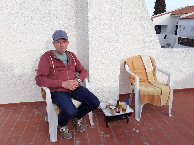 Foto links: 22-02-2020 Op de fiets naar Tavira en dat gaat Jan nog goed af !