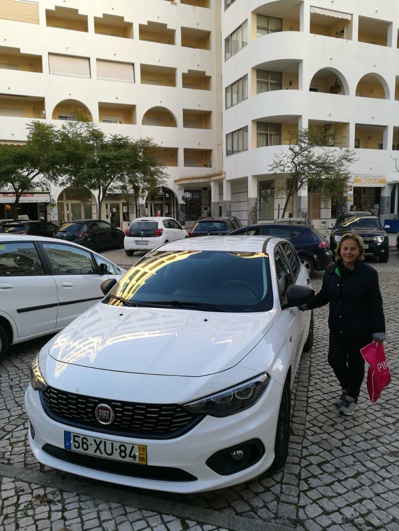 Linda wacht op mij bij de auto die ons naar Coimbra bracht.