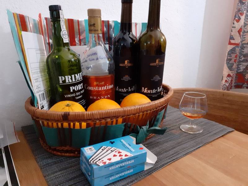 In dit pakket zat heel wat leuks en lekkers in van Wendy en de mannen ,toegestuurd gekregen , Jan was heel blij met 'n doos chocolade vlokken voor op z'n boterham ,kun je hier niet krijgen ! Maar hij moet er wel af en toe voor werken Toon niks voor niks !! Zo , nu ga ik 'ns even kijken of Jan de aardappels ook al heeft geschild ,we zullen toch ook nog 'n hapje moeten eten voordat die twee komen . Ze landen om 21.30 u op Faro, Marco heeft daar dan 'n huur auto staan en dan is het zo ongeveer 3 kwartier rijden naar hier, we kijken erg naar ze uit .