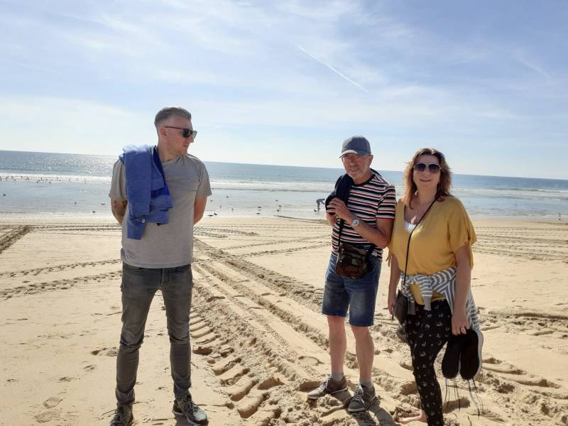 Vandaag 11 januari zijn we met de taxi naar een plaatsje dicht bij de Spaanse grens geweest waar we een grote markt hebben bezocht. Uiteraard hebben we daar ook wat gekocht en gegeten en gedronken, lekker zittend in de warme zon. Bekijk de foto's maar eens goed. Mijn lieftallige echtgenote werd gehaald voor een dans midden op de markt. Vanmiddag hebben Linda en ik samen een wandeling gemaakt langs de Atlantische Oceaan. Ik heb zelf(s) mijn schoenen en sokken uitgedaan. Op de terugweg naar het hotel heb ik gauw een korte broek en T-shirts gekocht want die was ik "vergeten". En het weer en dus ook de temperatuur is hier buitengewoon goed te noemen. Op een enkele zeurkous na lopen hier al veel mensen echt zomers gekleed. Ikke nu dus ook zei de gek.