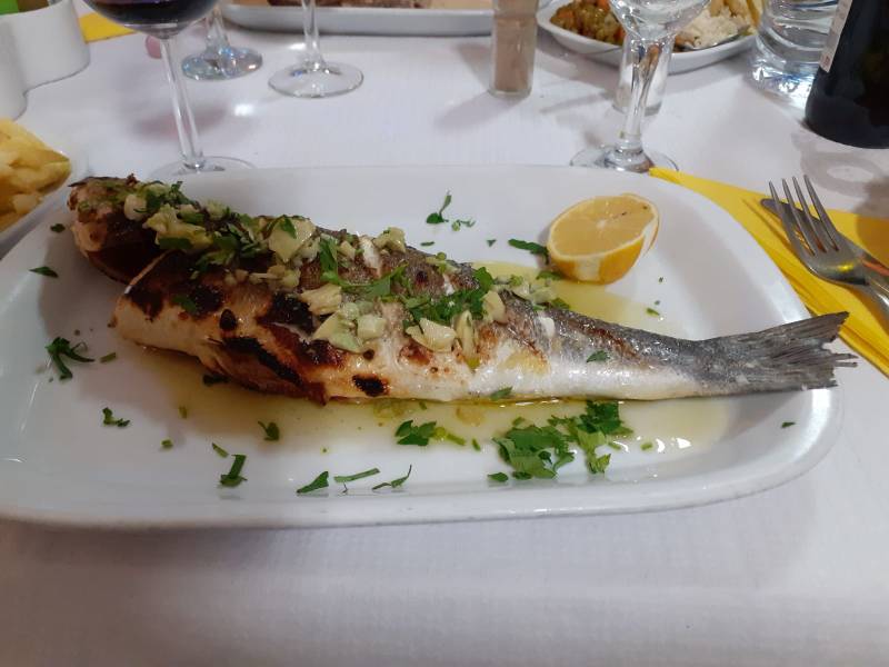 Na de wandeling door de bossen, onder het genot van mooi gitaarspel, hebben we in Santo Antonio genoten van een heerlijke vismaaltijd.