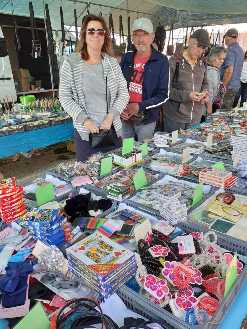 15 Feb. 2e dag met Wendy en Marco strak blauwe lucht, zigeunermarkt in Tavira voormiddag, wat souvenirs gekocht voor Rick en Ruben.