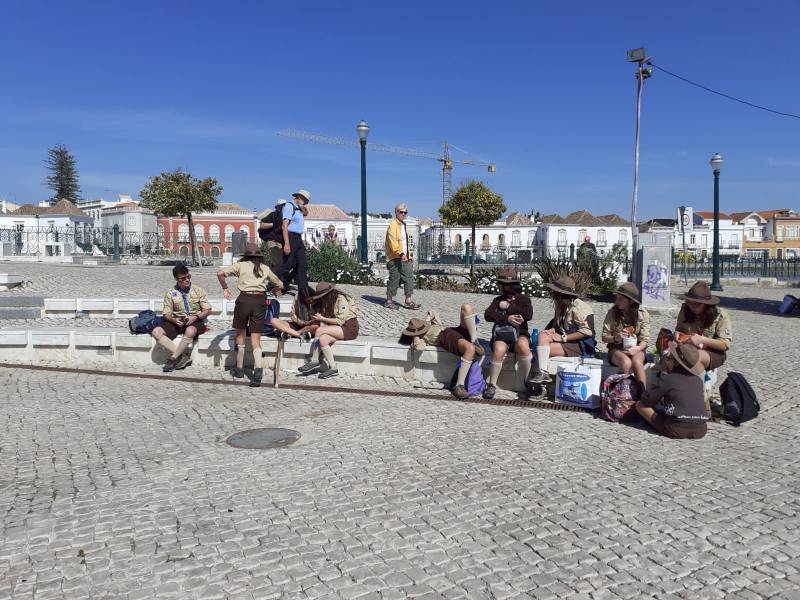 Veel groepen verkenners door de hele stad , overal activiteiten voor hun . Zag er gezellig uit.