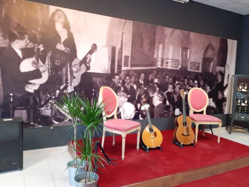 De kerk. En dan zijn we bij de Fado school aanbeland en kaartjes gekocht om in die mooie kerk 'n Fado uitvoering bij te wonen. Links de originele Portugese gitaar en rechts de originele Spaanse gitaar.