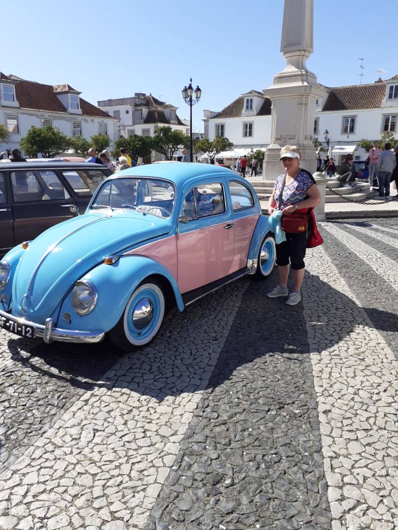 Aan de overkant van de rivier is Aja monta Spanje . En zie jij ook 'n uil ? Ja een heel eind terug staat die ook al uitgebreid beschreven. En dan liepen we naar het plein in Antonio en zagen we veel mooie oude auto's , Elise deze vond ik wel bij jou passen .