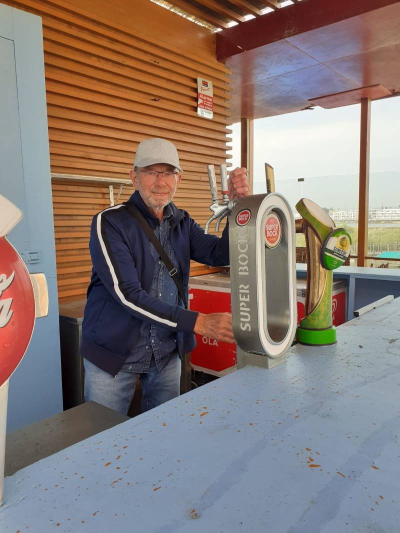 Jan probeert hier een Super Bock te tappen, maar helaas de tap was leeg en het strand paviljoen ook. Dus vette pech! En zeker als het warm is!