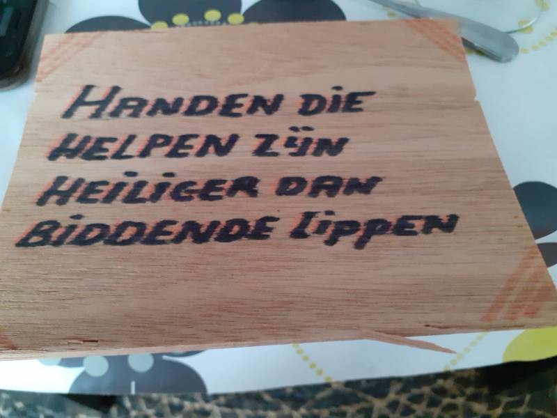 Aad houdt van spreuken en hij schrijft ze dan op de deksel van zijn sigaren kistjes, en 's avonds uit eten met het feestvarken bij " Jolly Sailer ", lekker flesjes wijn erbij met 'n mooi etiket van het bekende gele treintje uit Lissabon, en dan nog 'n plaatje van deze twee bijzondere vakantie vrienden π