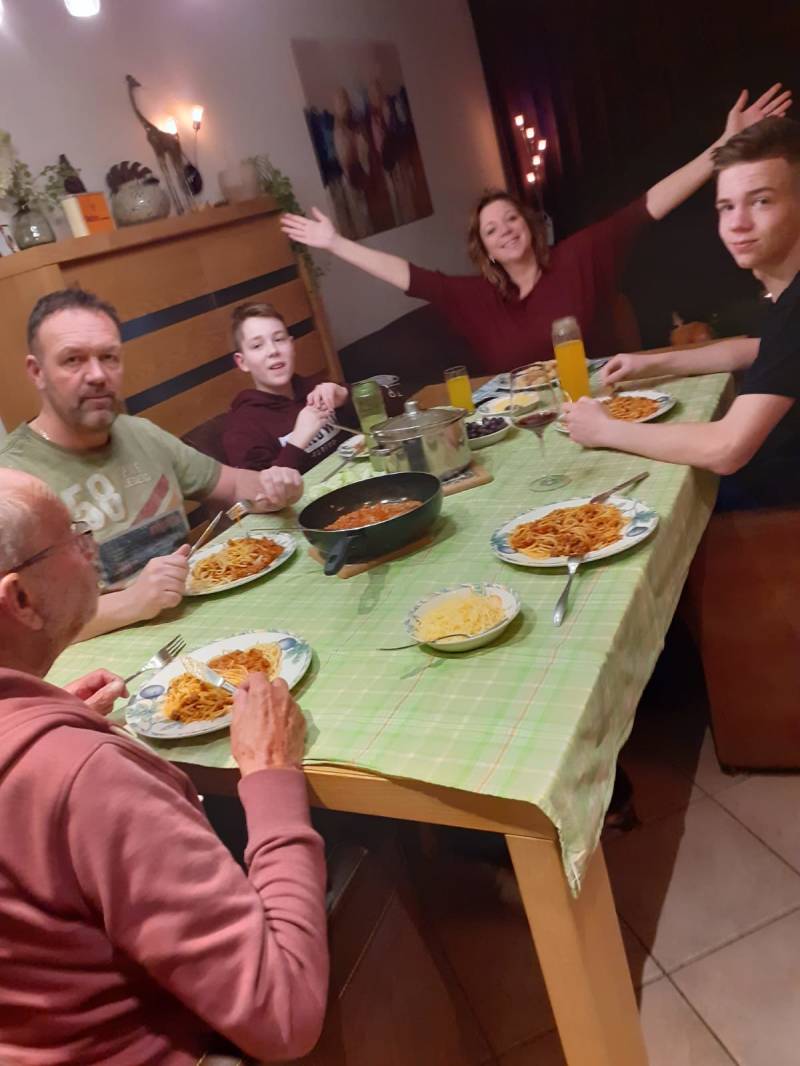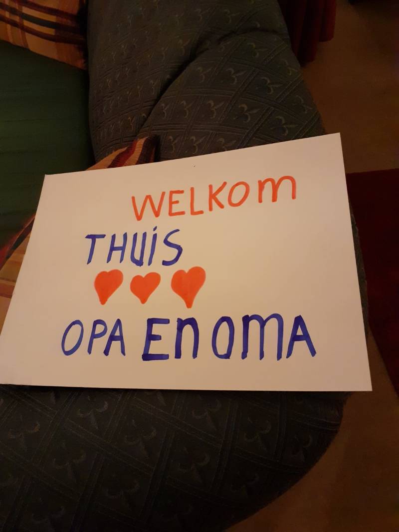 De koffers paste net in onze auto en wij ook nog gelukkig ! En dan eerst nog 'n potje geduzend en daarna lekkere spaghetti bij Wendy en die was heel blij dat wij er weer waren, net voor haar verjaardag 6 Maart! En 'n lekker toetje nog na. Wat 'n schatten! Daarna bij binnen komst in ons eigen huis stond ons nog 'n verrassing te wachtenπ₯³