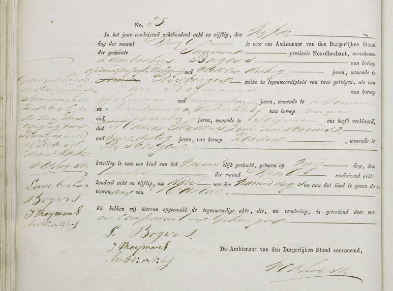 Hier hebben we wat meer moeite mee gehad om op het goede spoor te zitten en te blijven. Het geboortejaar 1822 is toch duidelijk te zien op deze akte en ook de naam is duidelijk: