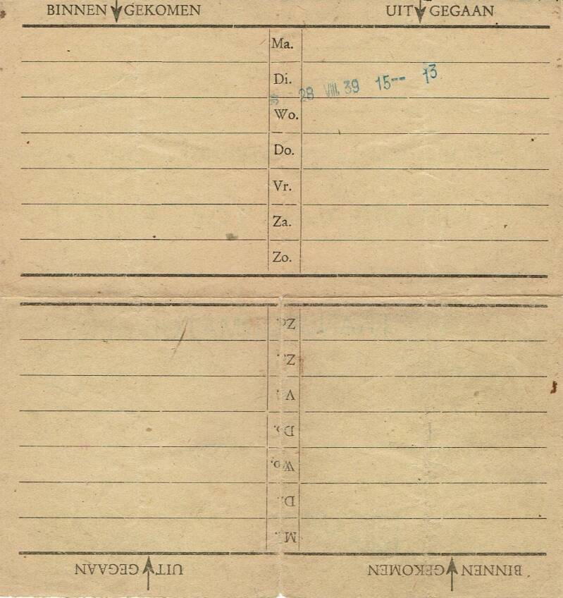Rechts onze pa zoals hij afgebeeld staat op zijn persoonsbewijs uit 1941. Op 25 mei 1940 wordt hij met groot verlof gestuurd, waarna hij in 1945 opnieuw een aantal maanden voor het geallieerde leger werkt.